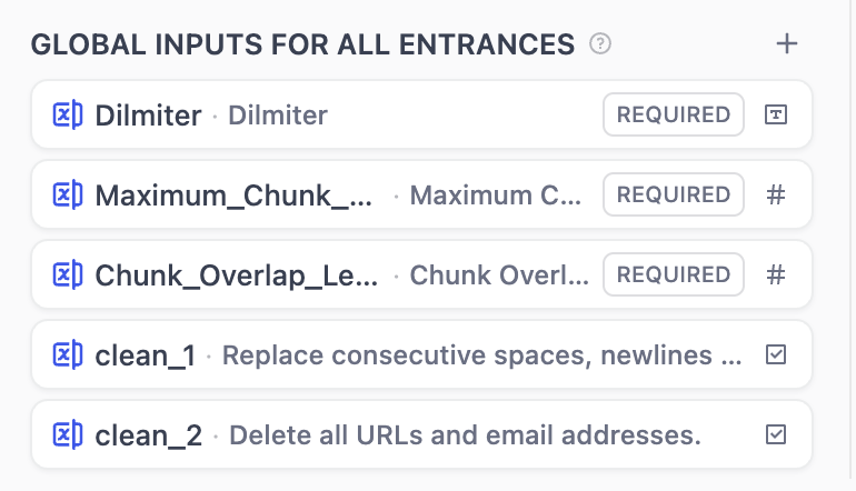 | 出力変数 | {x} Array[Chunk] | 分割済みコンテンツ配列(各要素は検索・分析向け) |